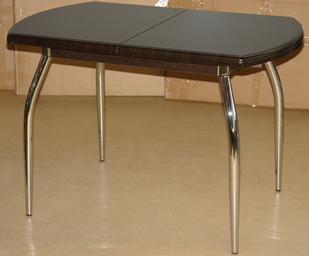 Стол «Толедо ПО»Цена модели на фото 11 190 руб.Габариты столешницы, мм: 700×1100(+370), полуовал.Материал: МДФ, пленка РВС, хром.